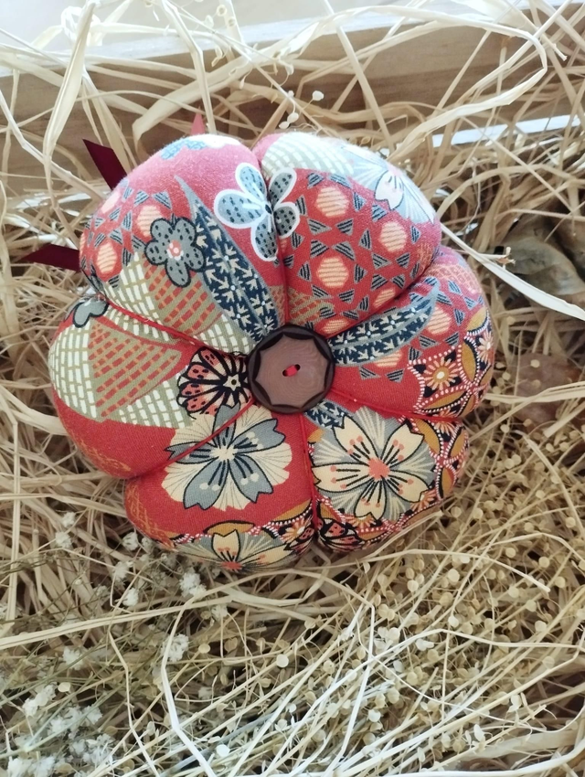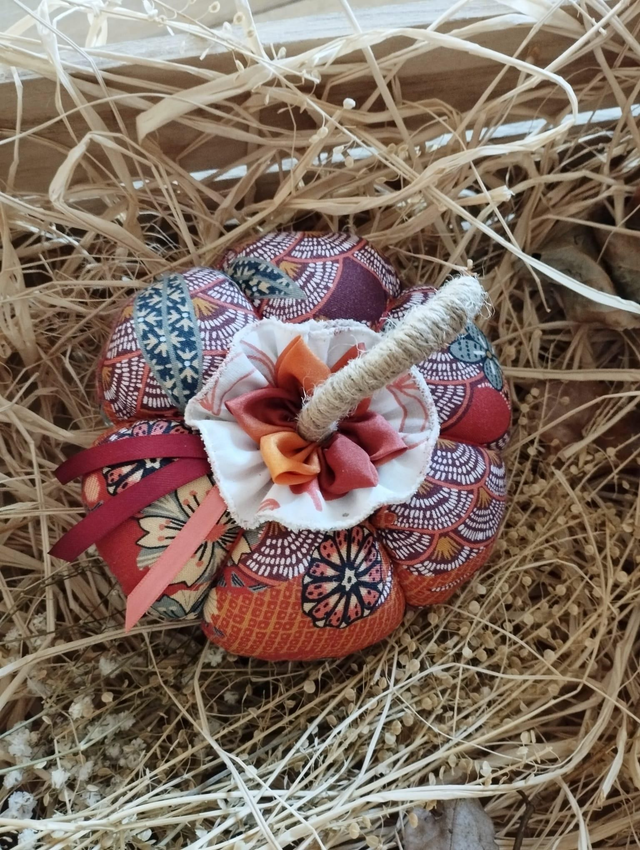 La citrouille est cousue dans du tissu de coton mélangé et garnie de ouate de rembourrage.