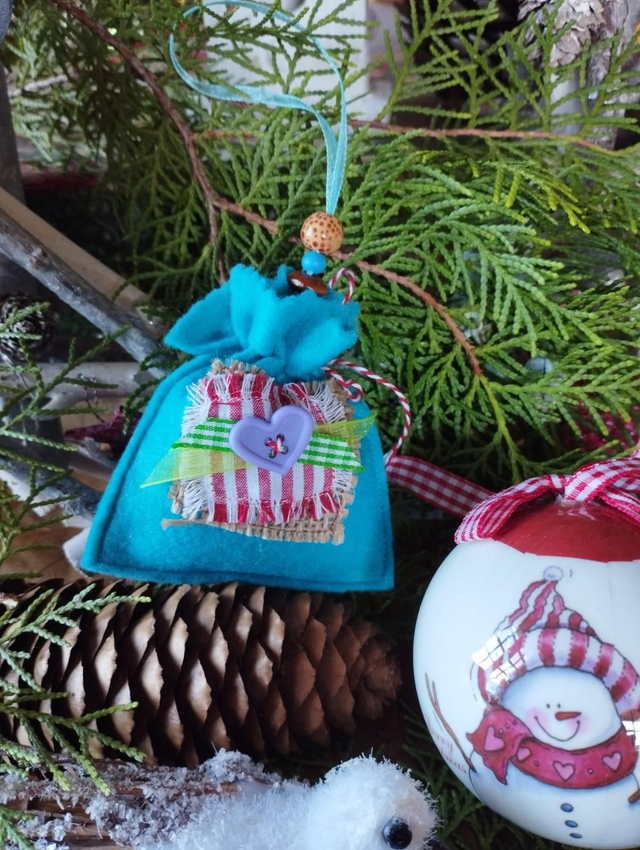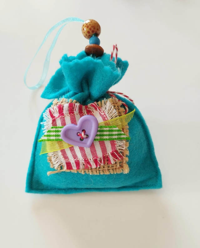 Assemblée et cousue à la main en feutrine et matériaux de seconde vie.