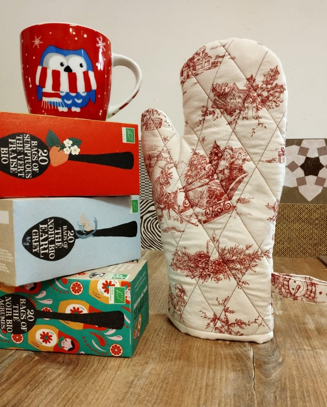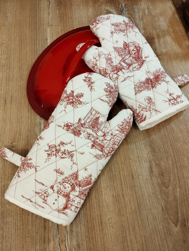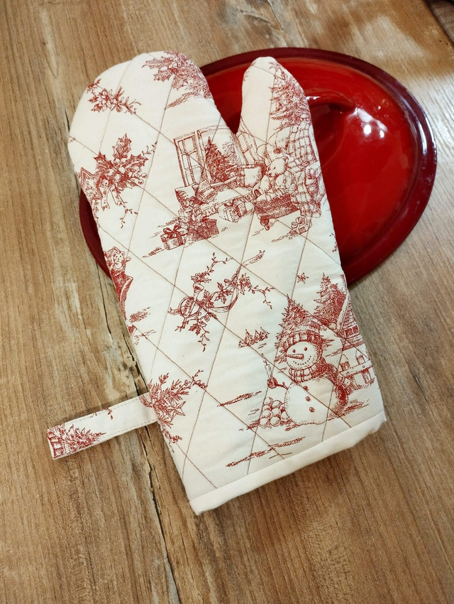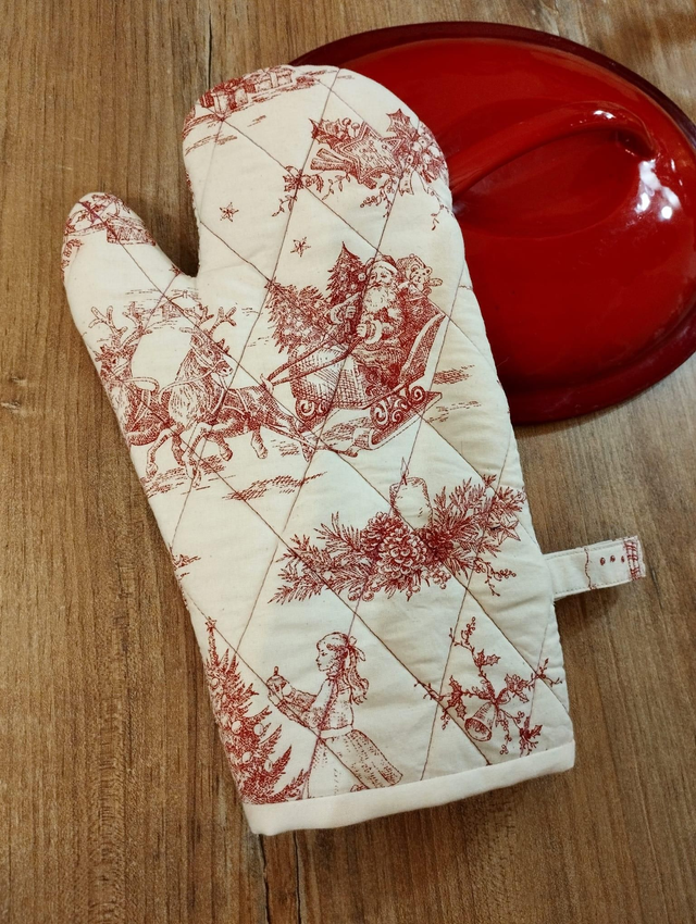 Ce gant de cuisine vous offre le charme rétro des dessins des Noëls d'autrefois.