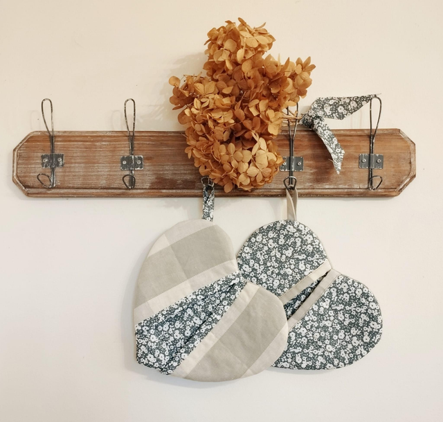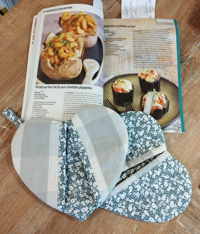 Cette manique est cousue dans du tissu de seconde vie et du tissu 100% coton