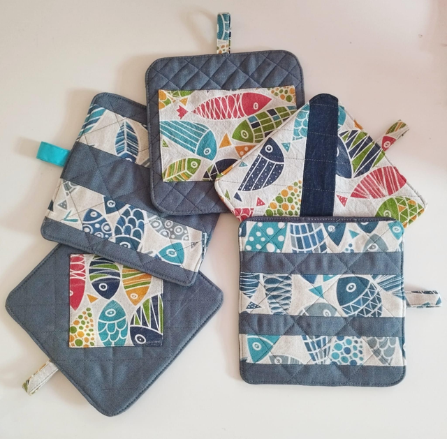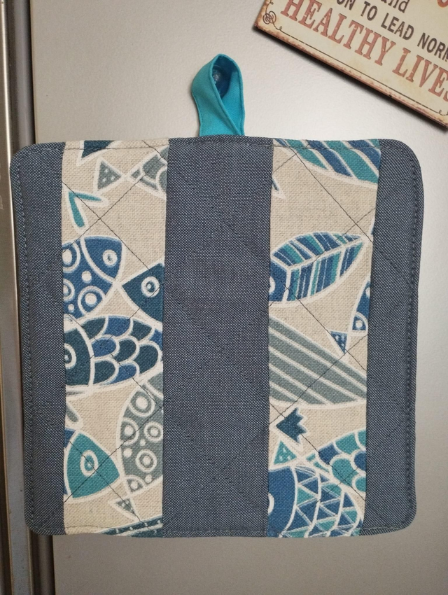 Cette manique est assortie au tablier de cuisine " Sardines party"